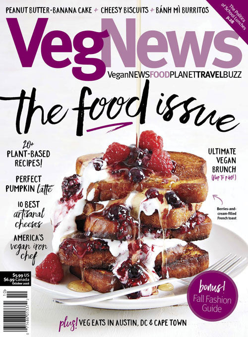 It's our annual Fall Food Issue, and you don't want to miss this very special edition! Packed with everything from 20+ plant-based recipes and the best eats in Austin to the politics of school lunches and a special guide to compassionate fashion, get your copy before it sells out. As always, all back issue orders include FREE shipping! And be sure to subscribe now so you don't miss a single issue!
